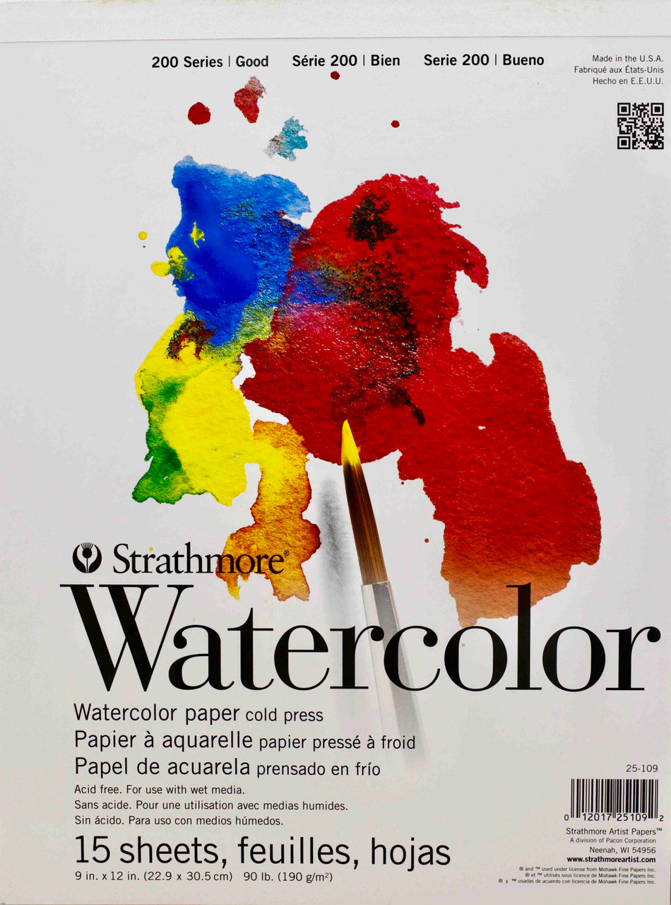 This Watercolor Pad is tape bound with size 9" x 12" and 90lb or 190 g/m2 in weight. It is cold press and contains 15 sheets per pad. It is recommended for beginners and students. It can be used for water-based media like watercolor, tempera, acrylic, gouache or poster paint.