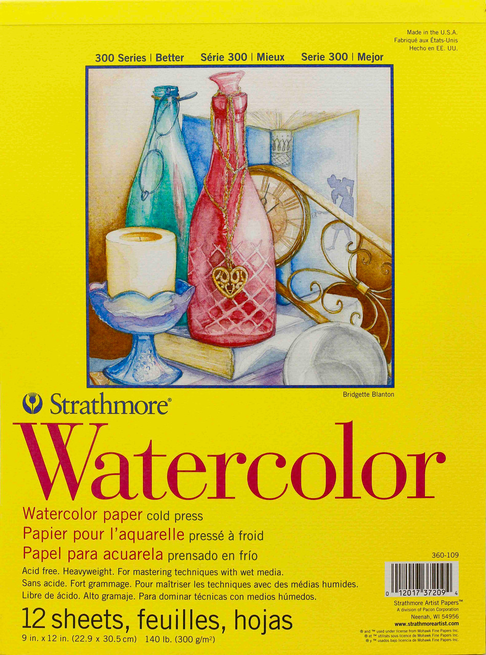Strathmore Watercolor Cold Press Paper Pad is acid free. The heavy weight paper is 140lb. or 300 g/m2. It is tape bound 9x12 in. size 12 sheets. This pad is for mastering techniques with wet media.